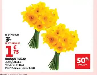 En plus de l'offre Bouquet de 20 jonquilles, Auchan propose une large gamme de produits. Consultez le Catalogue Auchan hebdomadaire pour découvrir les meilleures offres et promotions. En plus de Bouquet de 20 jonquilles, il y a aussi : Bouquet de 20 jonquilles crayon, Bouquet 20 jonquilles & Bouquet 20 jonquilles.