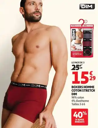 Actuellement en offre chez Auchan : Boxers homme coton stretch dim ✅ Valable du 21-04 au 2-05.