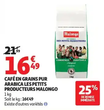 Actuellement en offre chez Auchan : Café en grains pur arabica les petits producteurs malongo ✅ Valable du 21-04 au 2-05.