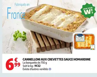 Actuellement en offre chez Auchan : Cannelloni aux crevettes sauce homardine ✅ Valable du 6-01 au 18-01.