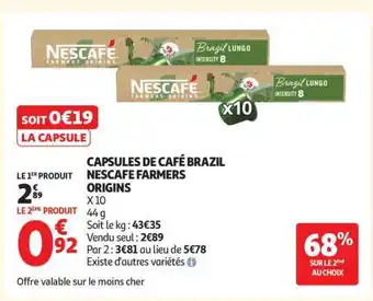 Actuellement en offre chez Auchan : CAPSULES DE CAFÉ BRAZIL NESCAFE FARMERS ORIGINS ✅ Valable du 8-04 au 19-04.
