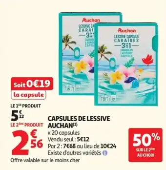 Actuellement en offre chez Auchan : Capsules de lessive auchan ✅ Valable du 3-03 au 15-03.