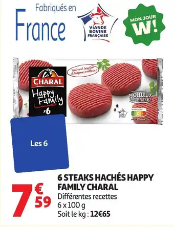 Offre CHARAL 6 steaks hachés happy family chez Auchan
