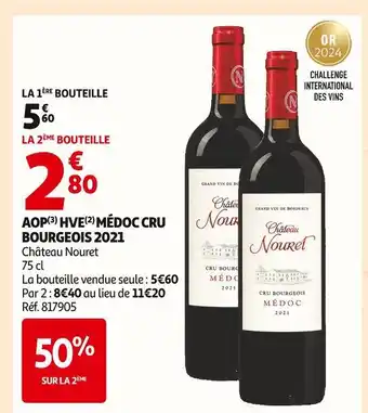 Actuellement en offre chez Auchan : Château nouret aop hve médoc cru bourgeois 2021 ✅ Valable du 26-12 au 5-01.