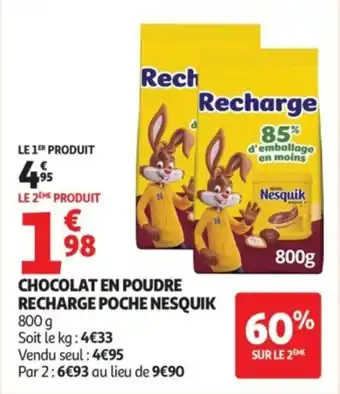 Actuellement en offre chez Auchan : Chocolat en poudre recharge poche nesquik ✅ Valable du 3-02 au 15-02.