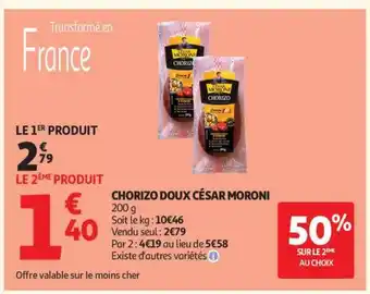 Actuellement en offre chez Auchan : Chorizo Doux César Moroni ✅ Valable du 28-04 au 10-05.