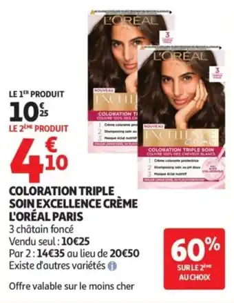 Coloration triple soin excellence crème l'oréal paris offres et promotions en ligne chez Auchan