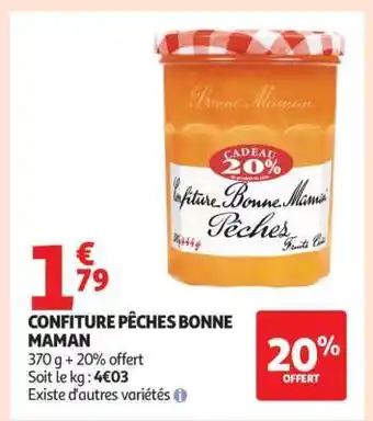 Actuellement en offre chez Auchan : CONFITURE PÊCHES BONNE MAMAN ✅ Valable du 17-03 au 22-03.