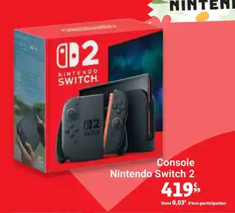 L'offre est disponible dans plusieurs magasins, vérifiez tous les produits pour obtenir le Console nintendo switch 2 le moins cher. Si vous souhaitez savoir si l'article est en vente avec une plus grosse remise dans un autre magasin, consultez la catégorie 'Supermarché'. Ces offres pourraient aussi vous intéresser : Nintendo console nintendo switch 2, Console Nintendo Switch 2 & Console nintendo switch.