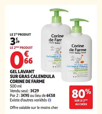 Offre CORINE DE FARME Gel lavant sur gras calendula chez Auchan