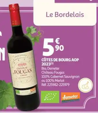Actuellement en offre chez Auchan : Côtes De Bourg Aop 2023 ✅ Valable du 17-03 au 29-03.