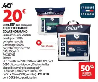 Couette chaude colas normand la couette 140 x 200 cm : offres et promos Auchan à découvrir