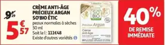 Actuellement en offre chez Auchan : Crème anti-âge précieux argan so'bio étic ✅ Valable du 27-01 au 8-02.