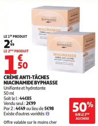 Actuellement en offre chez Auchan : CRÈME ANTI-TÂCHES NIACINAMIDE BYPHASSE ✅ Valable du 21-04 au 3-05.