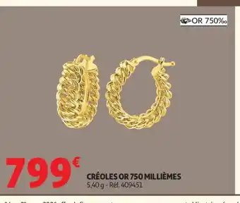Créoles or 750 millièmes offres et promotions en ligne chez Auchan