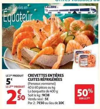 Crevettes Entières Cuites Réfrigérées offres et promotions en ligne chez Auchan