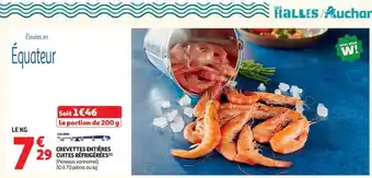Le prix de l'offre Crevettes Entières Cuites Réfrigérées se trouve également en haut de la page, ainsi que la date à laquelle l'offre est disponible. Vous pouvez également vérifier les prix dans le Catalogue Auchan actuel ou sur le site Internet de Auchan. Les offres vous permettent d'acheter les produits Auchan au prix le plus bas.
