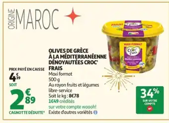 CROC FRAIS Olives de grèce à la méditerranéenne dénoyautées offres et promotions en ligne chez Auchan