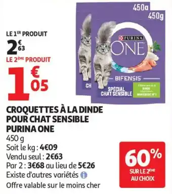Croquettes à la dinde pour chat sensible purina one offres et promotions en ligne chez Auchan