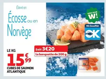Actuellement en offre chez Auchan : Cubes de saumon atlantique ✅ Valable du 16-12 au 24-12.