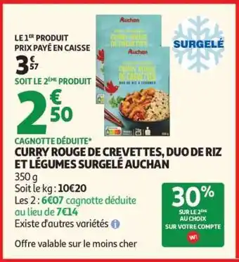 CURRY ROUGE DE CREVETTES, DUO DE RIZ ET LÉGUMES SURGELÉ AUCHAN offres et promotions en ligne chez Auchan