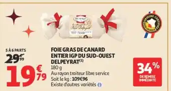 Offre DELPEYRAT Foie gras de canard entier igp du sud-ouest chez Auchan