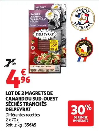 Offre Delpeyrat Lot de 2 magrets de canard du sud-ouest séchés tranchés chez Auchan