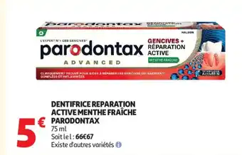 Actuellement en offre chez Auchan : DENTIFRICE REPARATION ACTIVE MENTHE FRAÎCHE PARODONTAX ✅ Valable du 21-04 au 3-05.