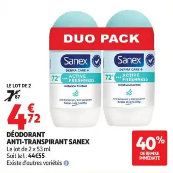 DÉODORANT ANTI-TRANSPIRANT SANEX offres et promotions en ligne chez Auchan