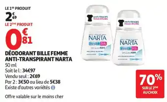 DÉODORANT BILLE FEMME ANTI-TRANSPIRANT NARTA : offres et promos Auchan à découvrir