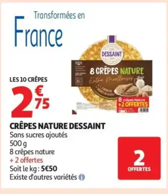 En plus de l'offre DESSAINT Crêpes nature, Auchan propose une large gamme de produits. Consultez le Catalogue Auchan hebdomadaire pour découvrir les meilleures offres et promotions. En plus de DESSAINT Crêpes nature, il y a aussi : Crêpes Sucrées Vanille Dessaint, 6 crêpes & 10 mini crêpes.