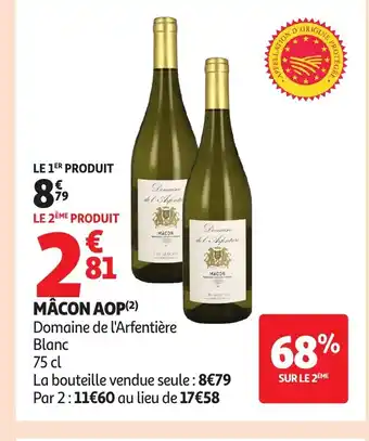 Actuellement en offre chez Auchan : DOMAINE DE L'ARFENTIÈRE Mâcon aop ✅ Valable du 6-01 au 18-01.