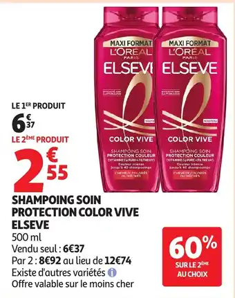 Actuellement en offre chez Auchan : ELSEVE Shampoing soin protection color vive ✅ Valable du 6-01 au 18-01.
