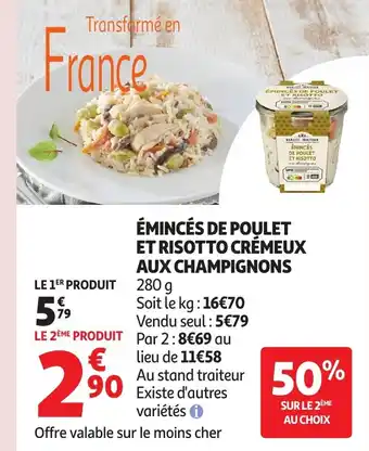 Actuellement en offre chez Auchan : Émincés de poulet et risotto crémeux aux champignons ✅ Valable du 2-01 au 11-01.