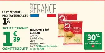 Actuellement en offre chez Auchan : Emmental râpé auchan ✅ Valable du 3-02 au 15-02.