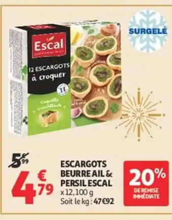 Actuellement en offre chez Auchan : ESCAL Escargots beurre ail & persil ✅ Valable du 16-12 au 31-12.