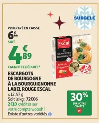 Offre ESCAL Escargots dourgogne à la bourguignonne label rouge chez Auchan