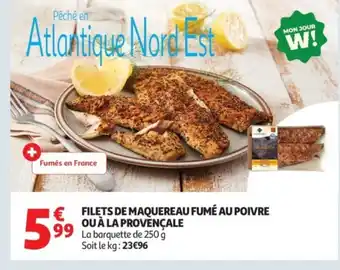 Actuellement en offre chez Auchan : Filets de maquereau fumé au poivre ou à la provençale ✅ Valable du 17-02 au 28-02.