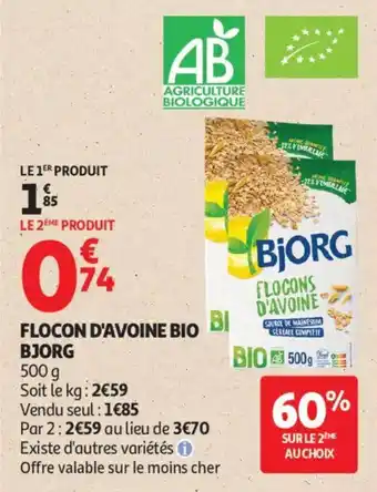 Actuellement en offre chez Auchan : Flocon d'avoine bio bjorg ✅ Valable du 21-04 au 2-05.
