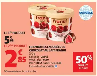 Actuellement en offre chez Auchan : FRAMBOISES ENROBÉES DE CHOCOLAT AU LAIT FRANUI ✅ Valable du 28-04 au 10-05.