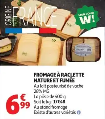 Offre Fromage à raclette nature et fumée chez Auchan