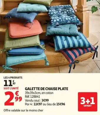 Le prix de l'offre Galette de chaise plate se trouve également en haut de la page, ainsi que la date à laquelle l'offre est disponible. Vous pouvez également vérifier les prix dans le Catalogue Auchan actuel ou sur le site Internet de Auchan. Les offres vous permettent d'acheter les produits Auchan au prix le plus bas.