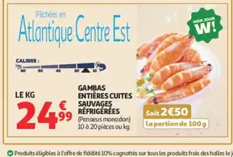 En plus de l'offre Gambas entières cuites sauvages réfrigérées, Auchan propose une large gamme de produits. Consultez le Catalogue Auchan hebdomadaire pour découvrir les meilleures offres et promotions. En plus de Gambas entières cuites sauvages réfrigérées, il y a aussi : Gambas entières cuites sauvages réfrigérées, Crevettes entières cuites réfrigérées & Crevettes entières cuites réfrigérées.