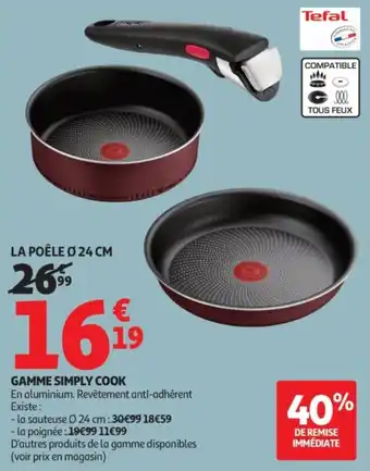 En plus de l'offre Gamme simply cook, Auchan propose une large gamme de produits. Consultez le Catalogue Auchan hebdomadaire pour découvrir les meilleures offres et promotions. En plus de Gamme simply cook, il y a aussi : TEFAL Gamme cook eat, TEFAL Gamme daily cook & TEFAL Gamme daily cook fixe.