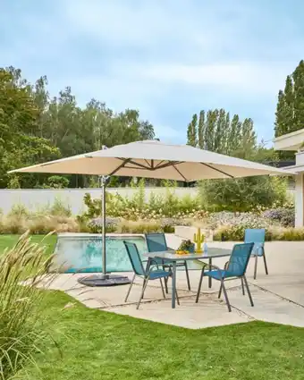 Actuellement en offre chez Auchan : Gardenstar parasol déporté 3 x 4 m ✅ Valable du 3-03 au 14-06.