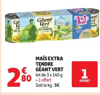 Actuellement en offre chez Auchan : GÉANT VERT Maïs extra tendre ✅ Valable du 6-01 au 18-01.