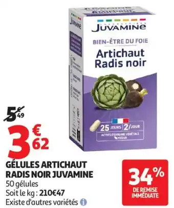 Actuellement en offre chez Auchan : GÉLULES ARTICHAUT RADIS NOIR JUVAMINE ✅ Valable du 21-04 au 3-05.