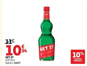 En plus de l'offre GET 27, Auchan propose une large gamme de produits. Consultez le Catalogue Auchan hebdomadaire pour découvrir les meilleures offres et promotions. En plus de GET 27, il y a aussi : Get 27 liqueur de menthe, LIQUEUR DE MENTHE 'GET 27' & Campanule Get Mee.