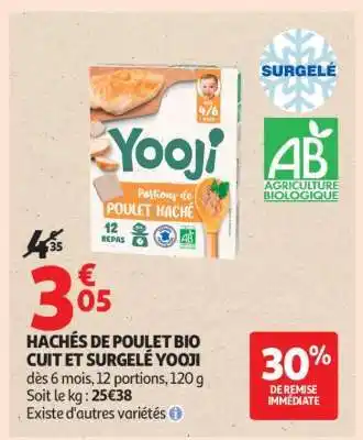 HACHÉS DE POULET BIO CUIT ET SURGELÉ YOOJI : offres et promos Auchan à découvrir