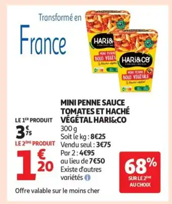 Actuellement en offre chez Auchan : HARI & CO Mini penne sauce tomates et haché végétal ✅ Valable du 16-12 au 24-12.